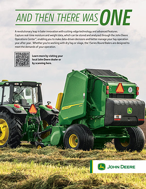 A revolutionary leap in baler innovation with cutting-edge technology and advanced features . Capture real-time moisture and weight data , which can be stored and analyzed through the John Deere Operations Center™ , enabling you to make data-driven decisions and better manage your hay operation year after year . Whether you ’ re working with dry hay or silage , the 1 Series Round Balers are designed to meet the demands of your operation .