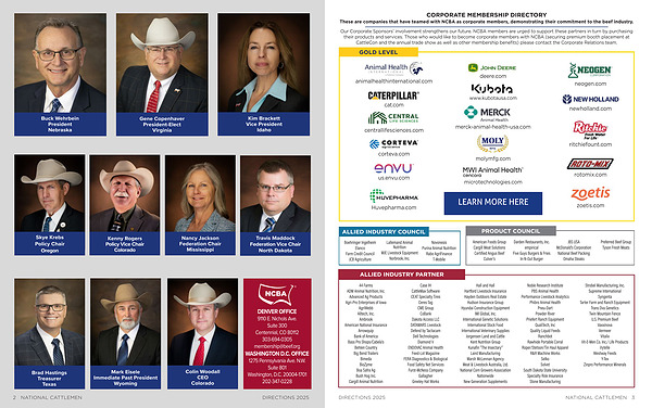 Case IH CattleMax Software CEAT Specialty Tires Ceres Tag CME Group CoBank Dakota Access LLC DATAMARS Livestock Defend by Tactacam Dell Technologies Diamond V ENDOVAC Animal Health Feed-Lot Magazine FERA Diagnostics & Biological Food Safety Net Services Furst-McNess Company Gallagher Greeley Hat Works |