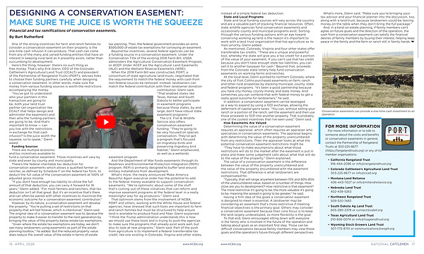 That optimism stems from the involvement of NCBA, PORT and others, working with the White House and federal agencies, have stressed that such tools are important to farm and ranch families but must be structured to help ensure land is available to produce food and fiber, Glenn explained.“ I think the Trump administration understands this is how we should use these tools and is trying to push the agencies to make sure the programs that already exist work well, but also to look at new programs,” Glenn said. Part of the push from agriculture is to implement a federal transferrable tax credit, like one existing in Colorado, Virginia and other states,