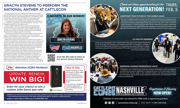 Gracyn Stevens of Kirklin, Indiana, is the winner of the 13th annual NCBA National Anthem Contest, sponsored by Norbrook ®. Stevens will sing the“ Star-Spangled Banner” at CattleCon 2026 in Nashville, Tennessee, Feb. 3-5. After an online application process, Stevens won through online voting by the public.