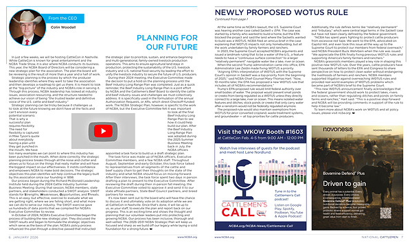 To learn more about NCBA’ s work on WOTUS and all policy issues, please visit ncba. org.