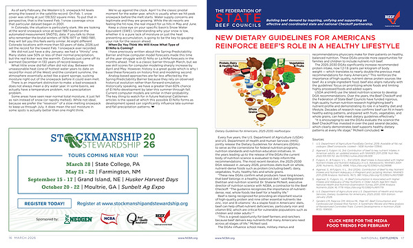 “ These new DGAs confirm what producers have long known, that beef belongs in a healthy, balanced diet,” said Registered Dietitian and nutrition scientist Dr. Shalene McNeill, executive director of nutrition science with NCBA, a contractor to the Beef Checkoff.“ The guidance recognizes the importance of nutrientdense, real, whole foods like beef for a healthy life.”
