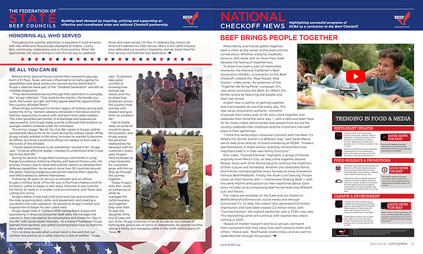 To share how beef is part of memorable moments , the National Cattlemen ’ s Beef Association ( NCBA ), a contractor to the Beef Checkoff , created the “ Real People . Real Stories .” video series . An extension of the “ Together We Bring More ” campaign , this new series promotes the Beef . It ’ s What ’ s For Dinner . brand by featuring real people and their real stories .