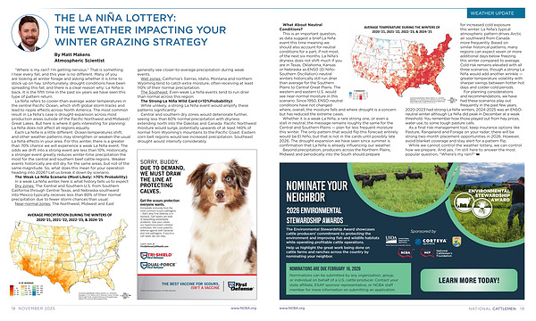 As a final risk-management tool, keep insurance options like Pasture, Rangeland and Forage on your radar; there will be strong two-month placement opportunities in 2026. However, avoid blanket coverage and stay alert for a pattern flip.